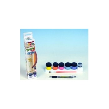 Obsahuje 5 farieb po 12 ml, čiernu kontúru 5 ml a štetec. Farby sú vodou riediteľné. Na docielenie širšej farebnej palety je možné farby miešať medzi sebou.